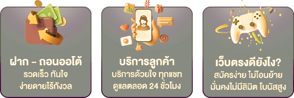 ตอบ : - มีความมั่นคงทางการเงินสูง ฝาก-ถอนรวดเร็วภายใน 30 วินาที มีทีมงานดูแล 24 ชั่วโมง อัตราการจ่ายเงินรางวัลสูง และมีโปรโมชั่นพิเศษมากมาย
